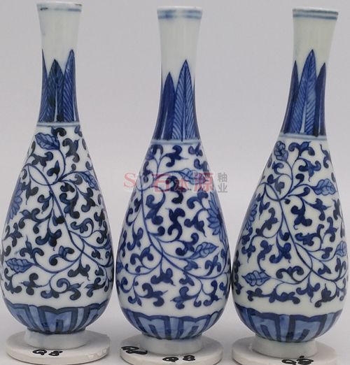 Q08号青花料与三款不同青花釉烧制的样板照