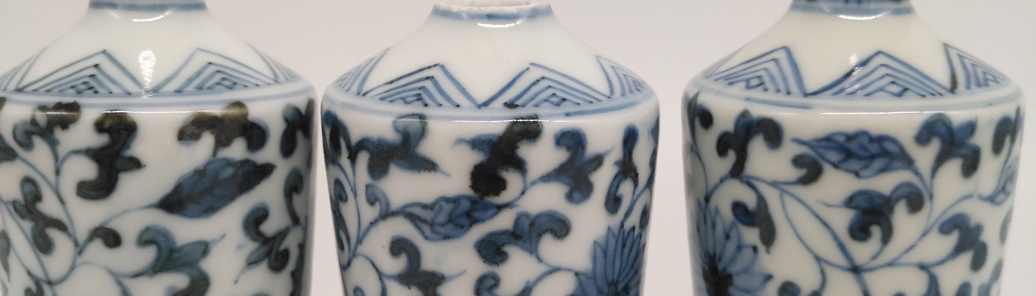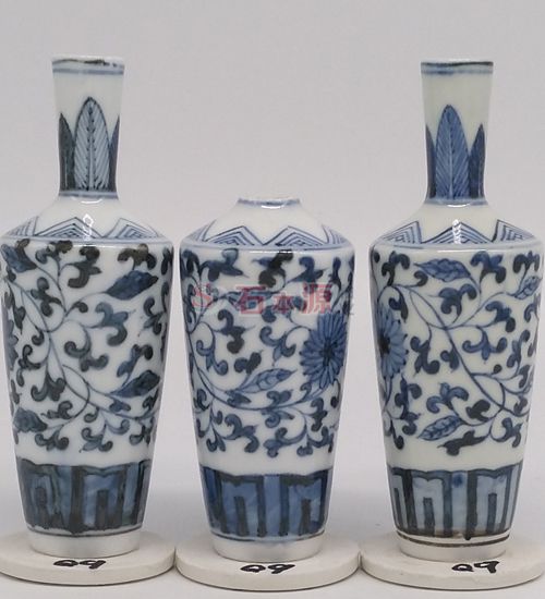 Q09号青花料与三款不同青花釉烧制的样板照